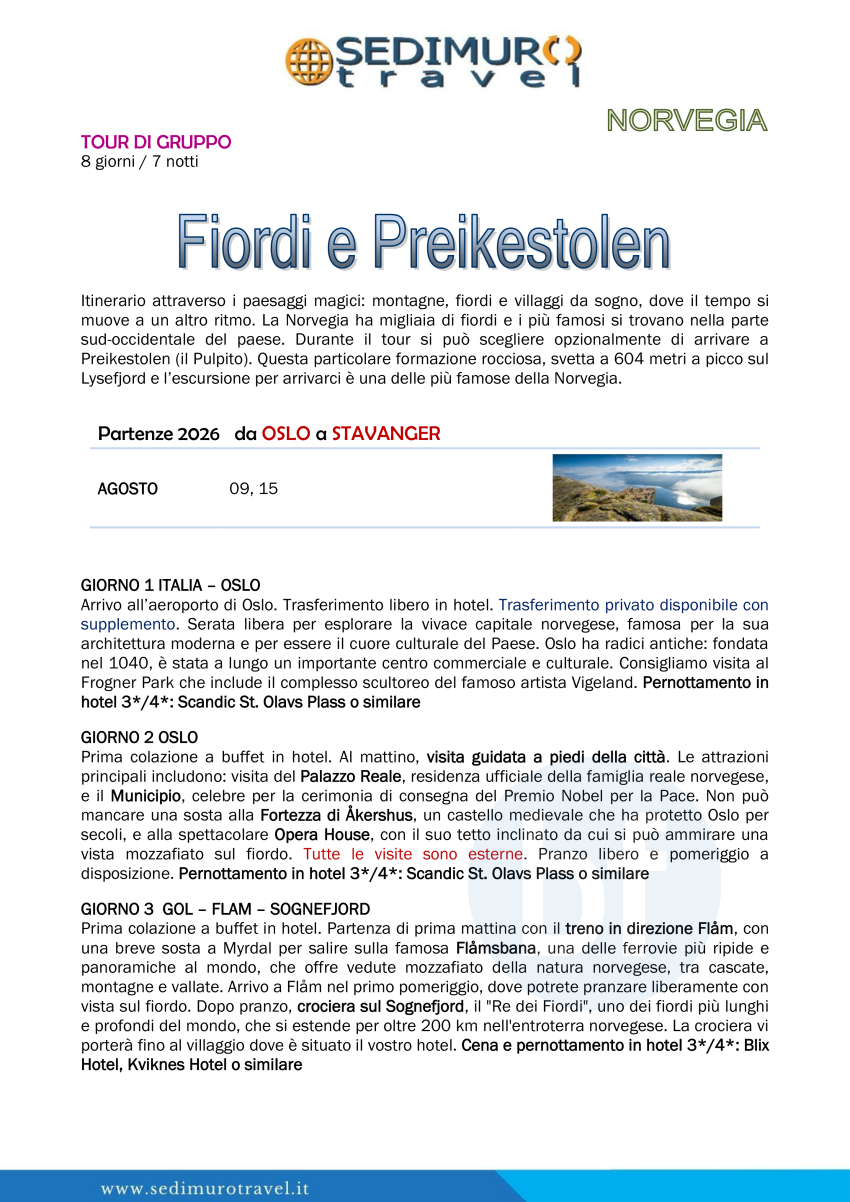 Fiordi e Preikestolen da Oslo a Stavanger 8 giorni