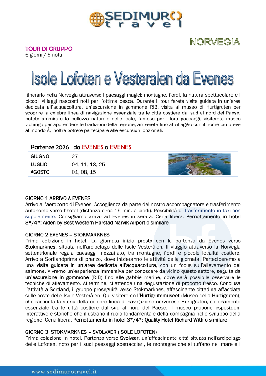Isole Lofoten e Vesteralen da Evenes 6 giorni