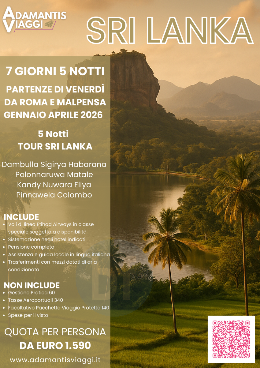 Tour Sri Lanka - 8 giorni 5 Notti Gennaio Aprile 2026